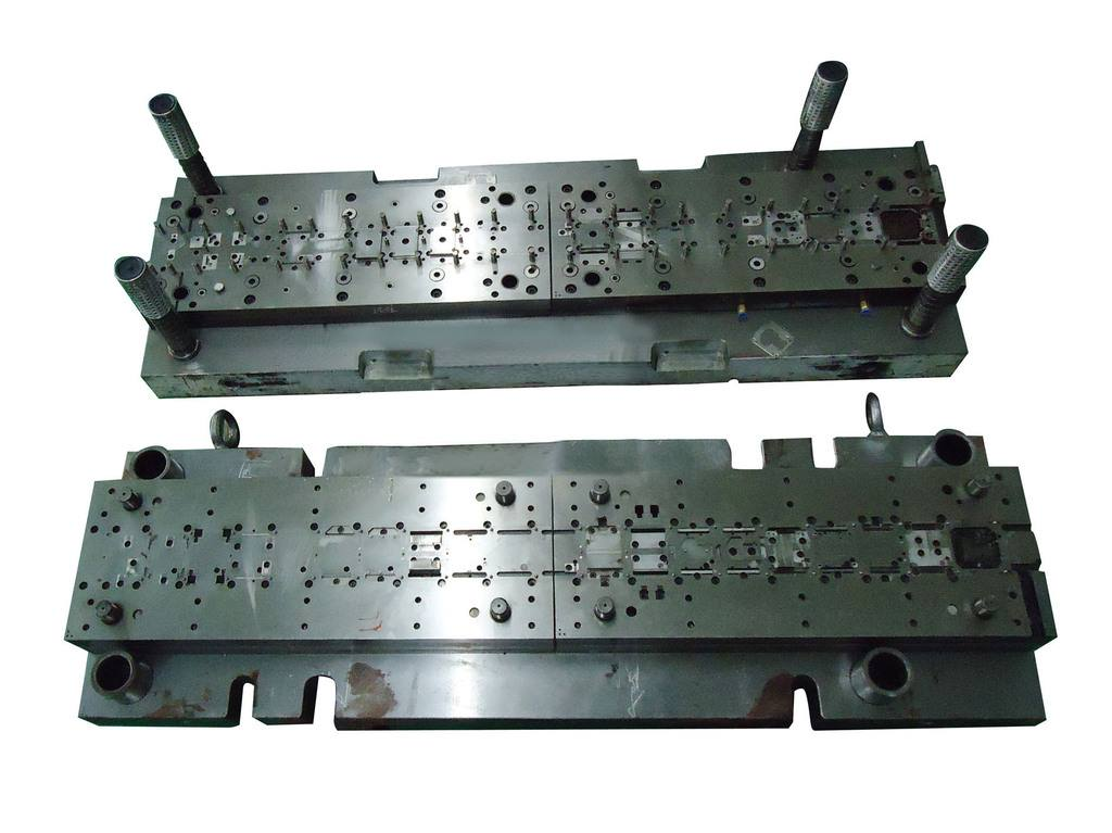 對策:a、.解決跳屑、屑料阻塞、卡模等問題; b、注意送料,及時修剪料帶,及時清理模具;c、修改設(shè)計,增加凸模整體強度,減短凹模直刃部尺寸,注意凸模刃部端面修出斜度或弧形,細小部后切;d、小凸模長度磨短相對大凸模一個料厚以上;e、修改設(shè)計;f、控制凸凹模加工精度或修改設(shè)計間隙,細小部沖切間隙適當(dāng)加大;g、調(diào)整沖壓油滴油量或更換油種;h、檢查各成形件精度,并施以調(diào)整或更換,控制加工精度;i、研修或更換;j、更換導(dǎo)柱、導(dǎo)套,注意日常保養(yǎng);k、更換使用材質(zhì),使用合適硬度;i、更換導(dǎo)料件; m、修正,墊片數(shù)盡可少,且使用鋼墊,凹模下墊片需墊在墊塊下面。